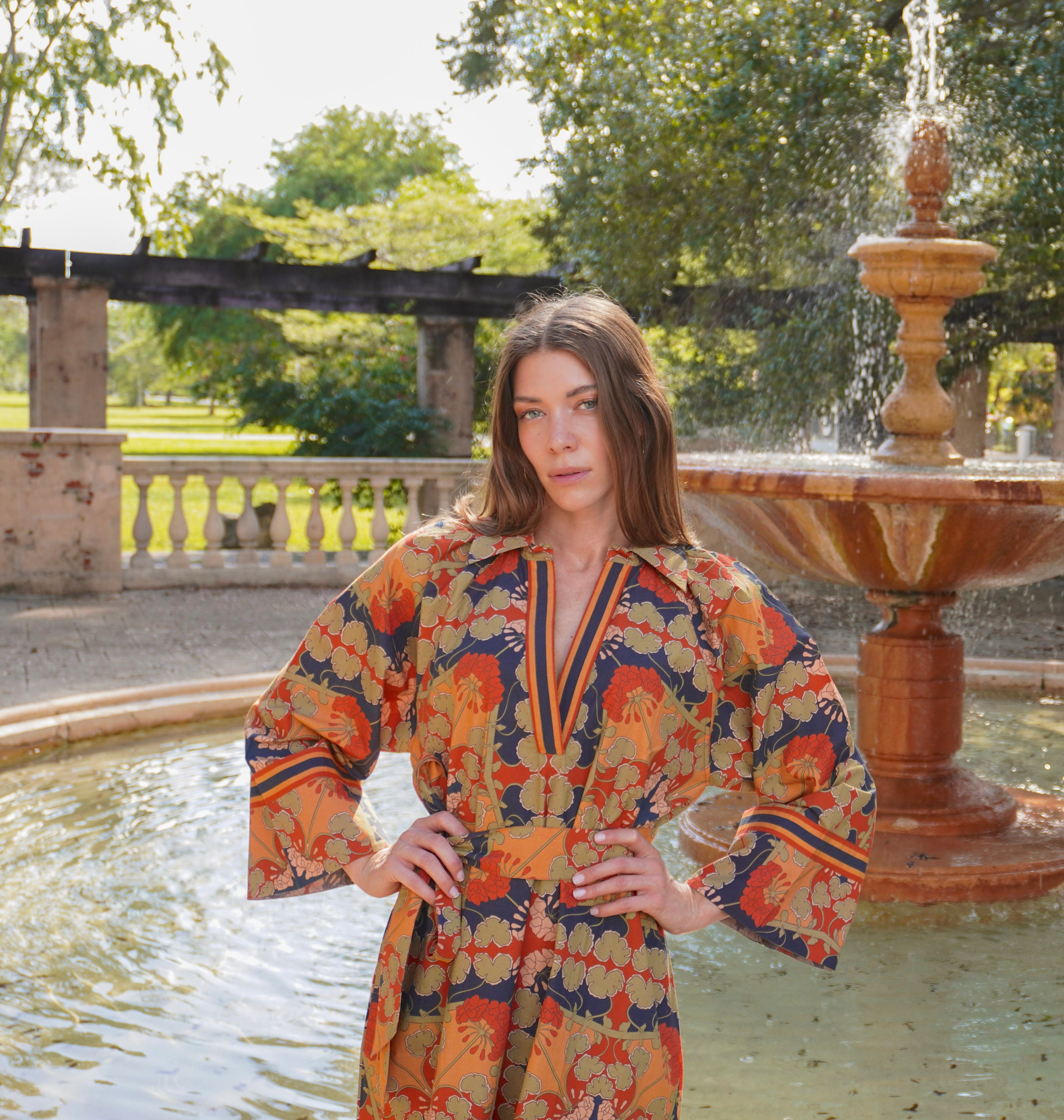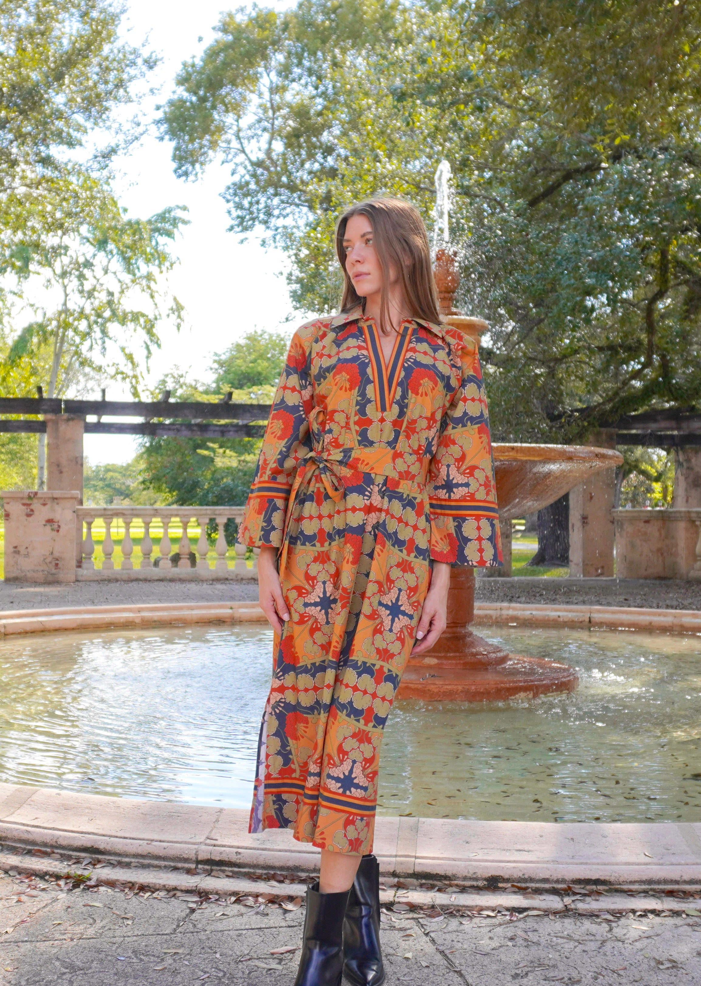 The Aspen midi is an easy polished dress that flatters all body types. We love the raglan sleeves that give added comfort and movement. The border trims add to the elevated look. The collared V neck is great for showing your neckpieces. Yes, it has pockets!