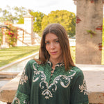 The Como midi is a flattering, clean silhouette, with a band collar and functional buttons on the yoke. We love the elegant bell sleeves that elevate this classic body. The side slits at the hemline show just a little leg for a quiet sexy feel.