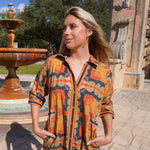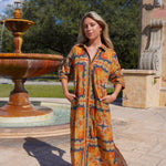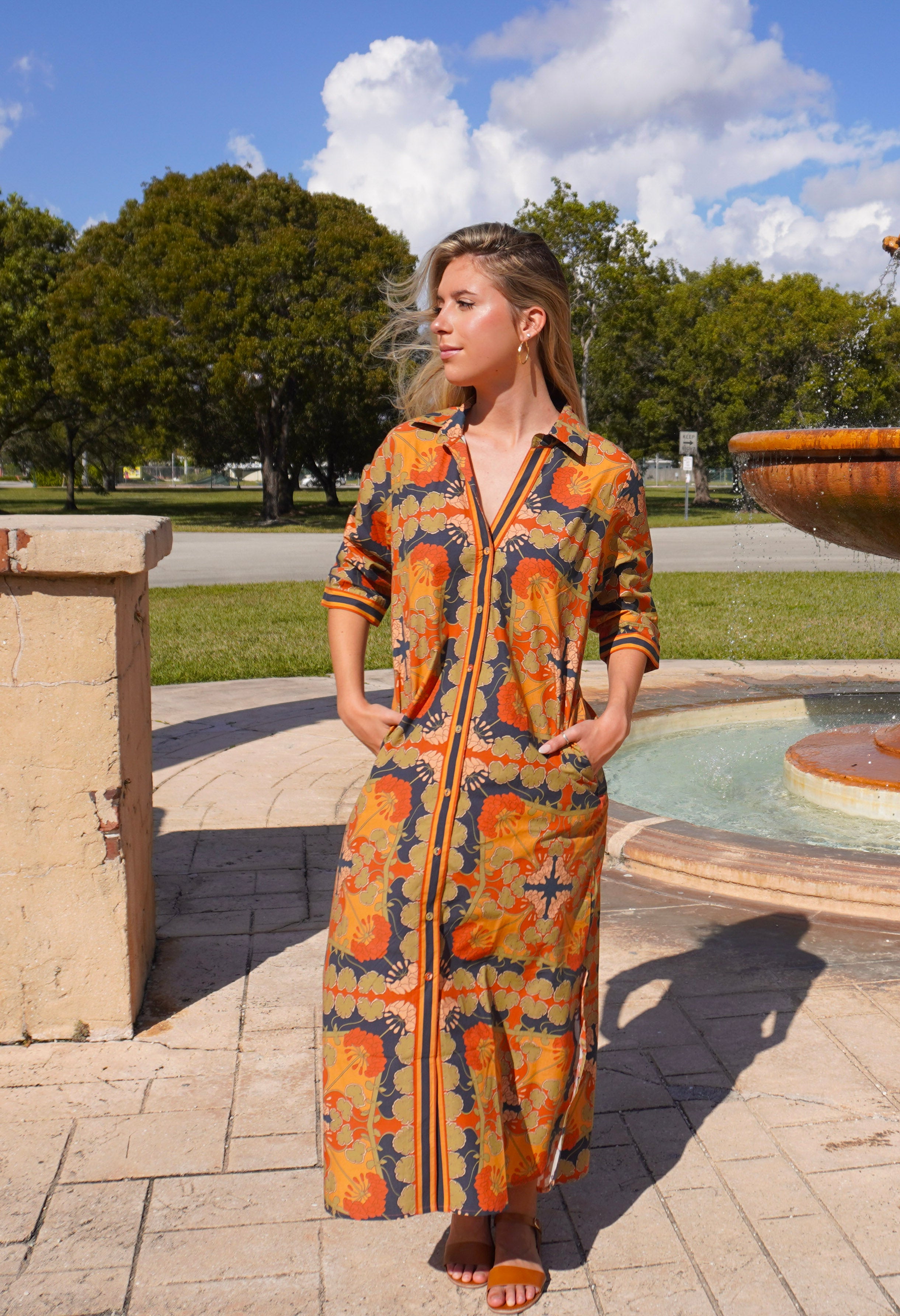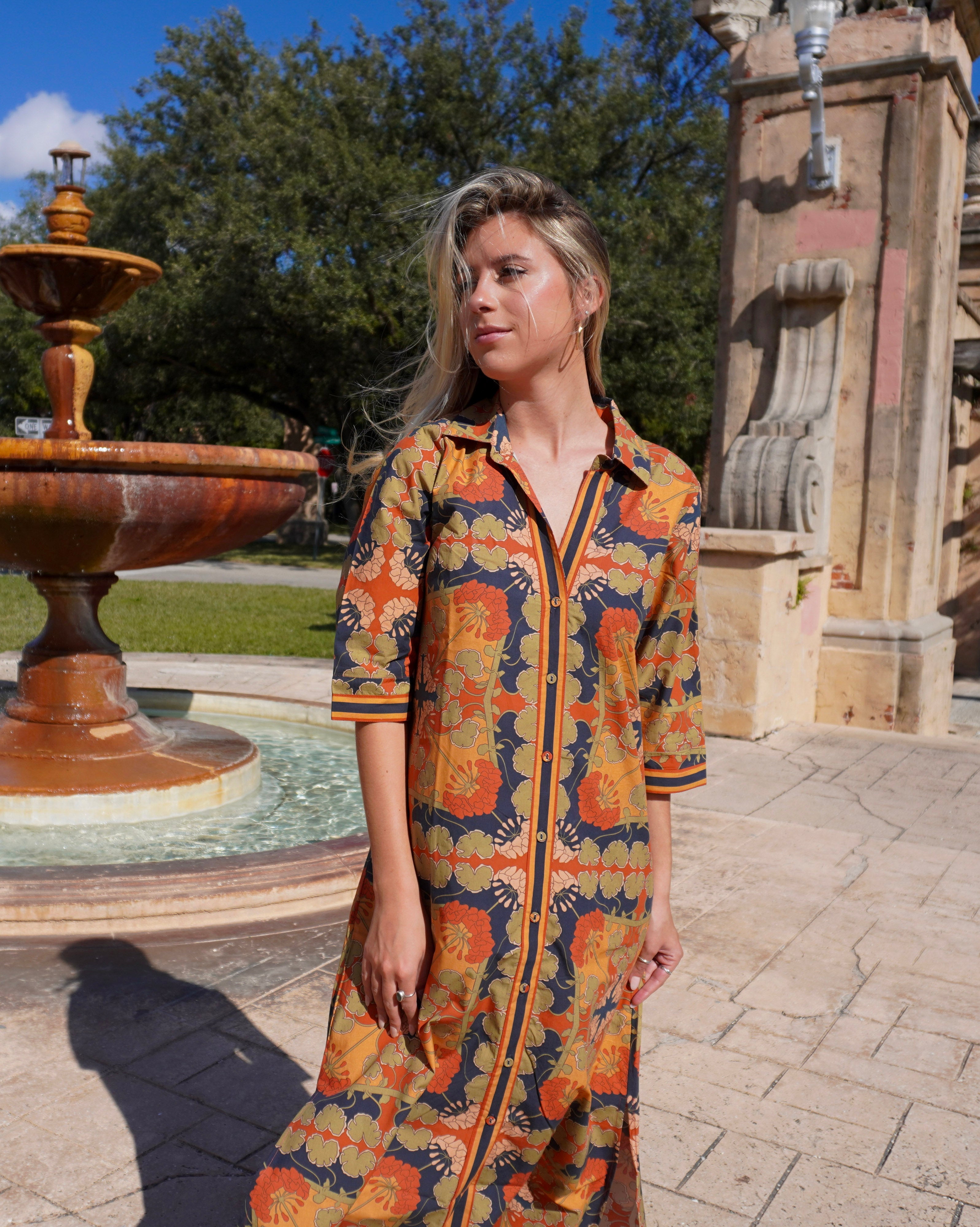 The Rhea midi is a slimming shirt dress with a flattering silhouette. This versatile day-dress can double up as a beach coverup or a duster coat. Dress up with heels, dress down with sneakers.