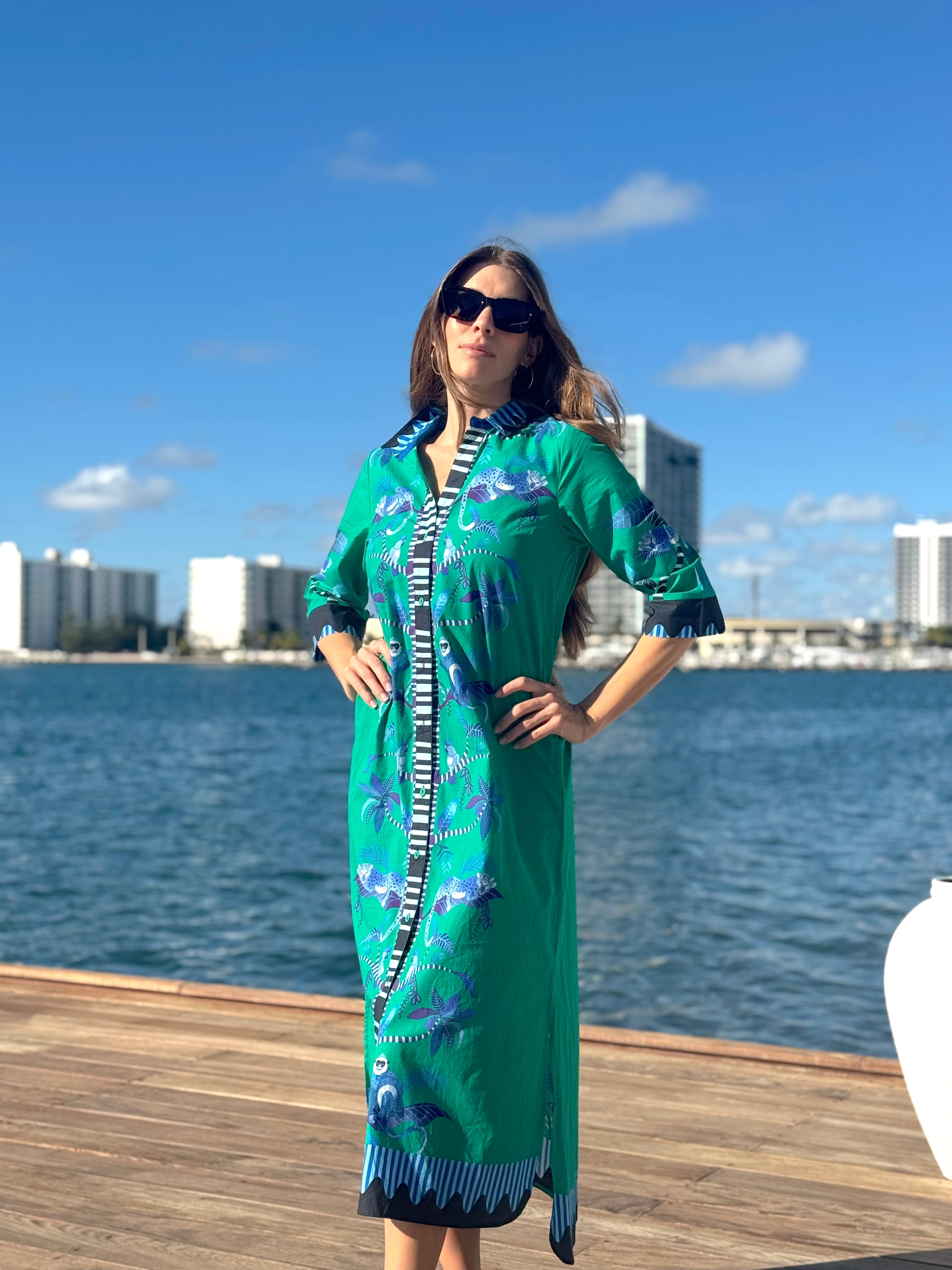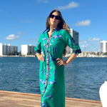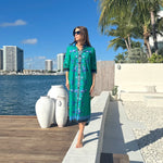 The Rhea midi is a slimming shirt dress with a flattering silhouette. This versatile day-dress can double up as a beach coverup or a duster coat. Dress up with heels, dress down with sneakers.