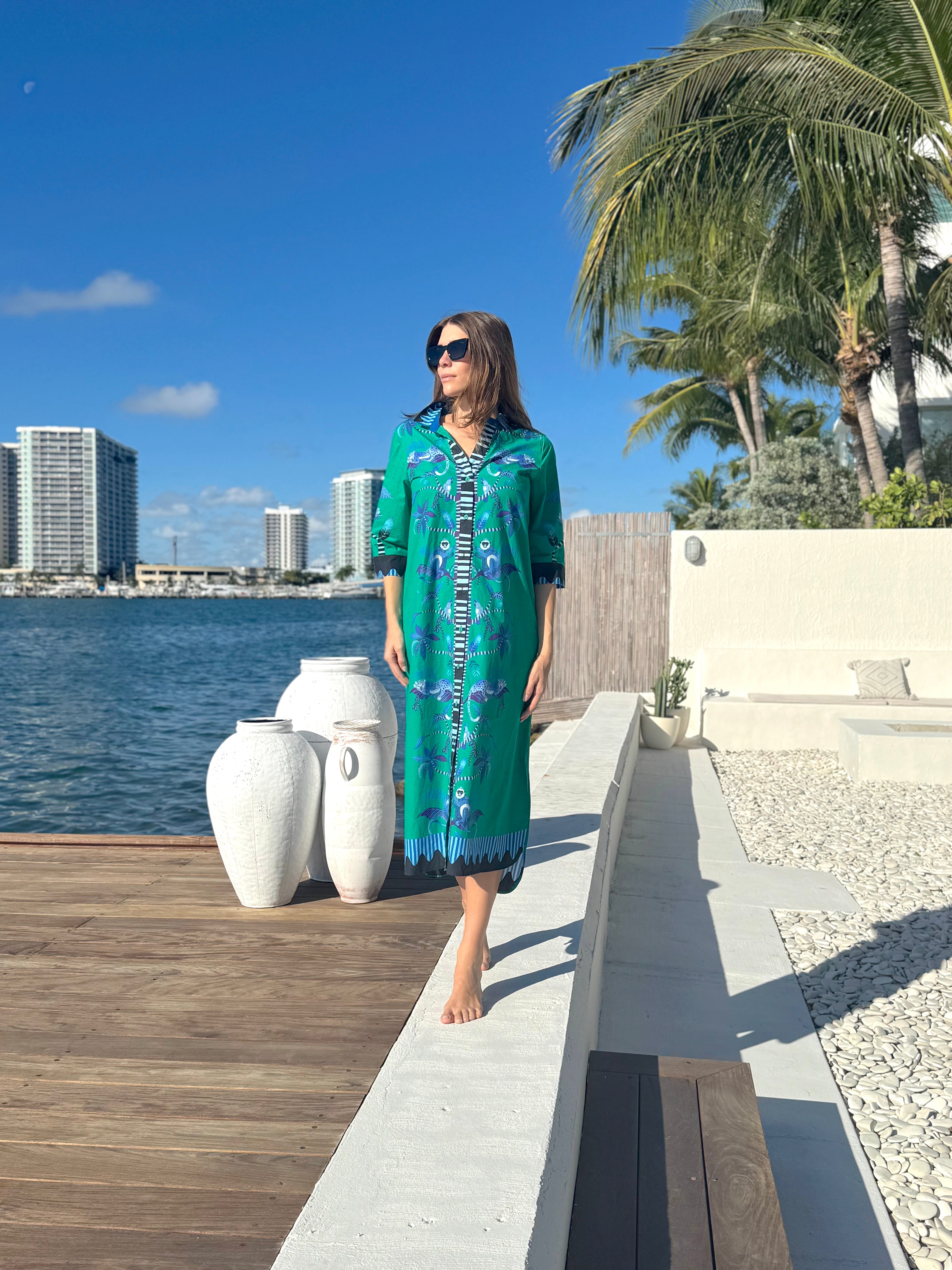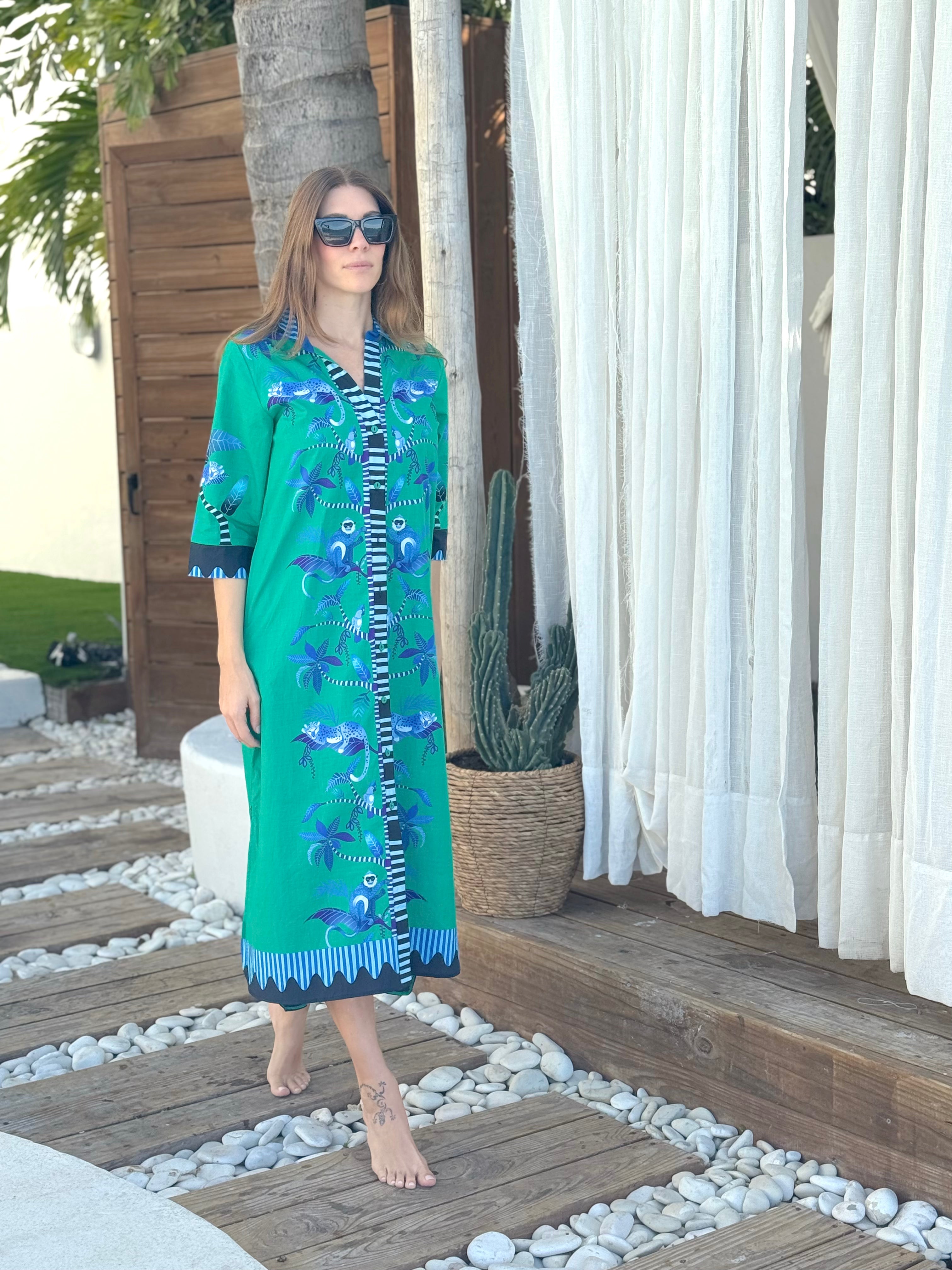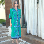 - Buttons down the front, can be worn as a duster coat with jeans or shorts