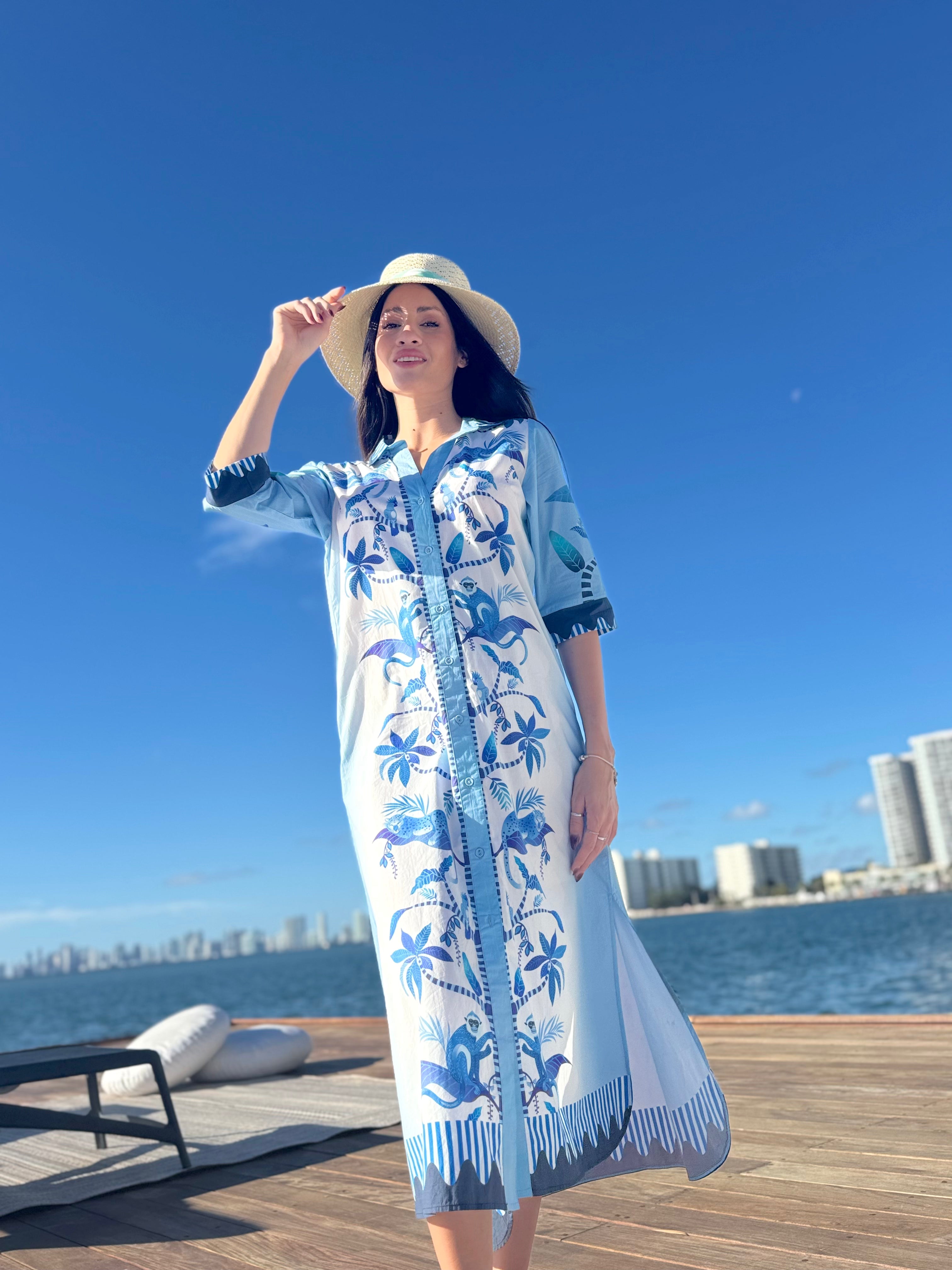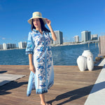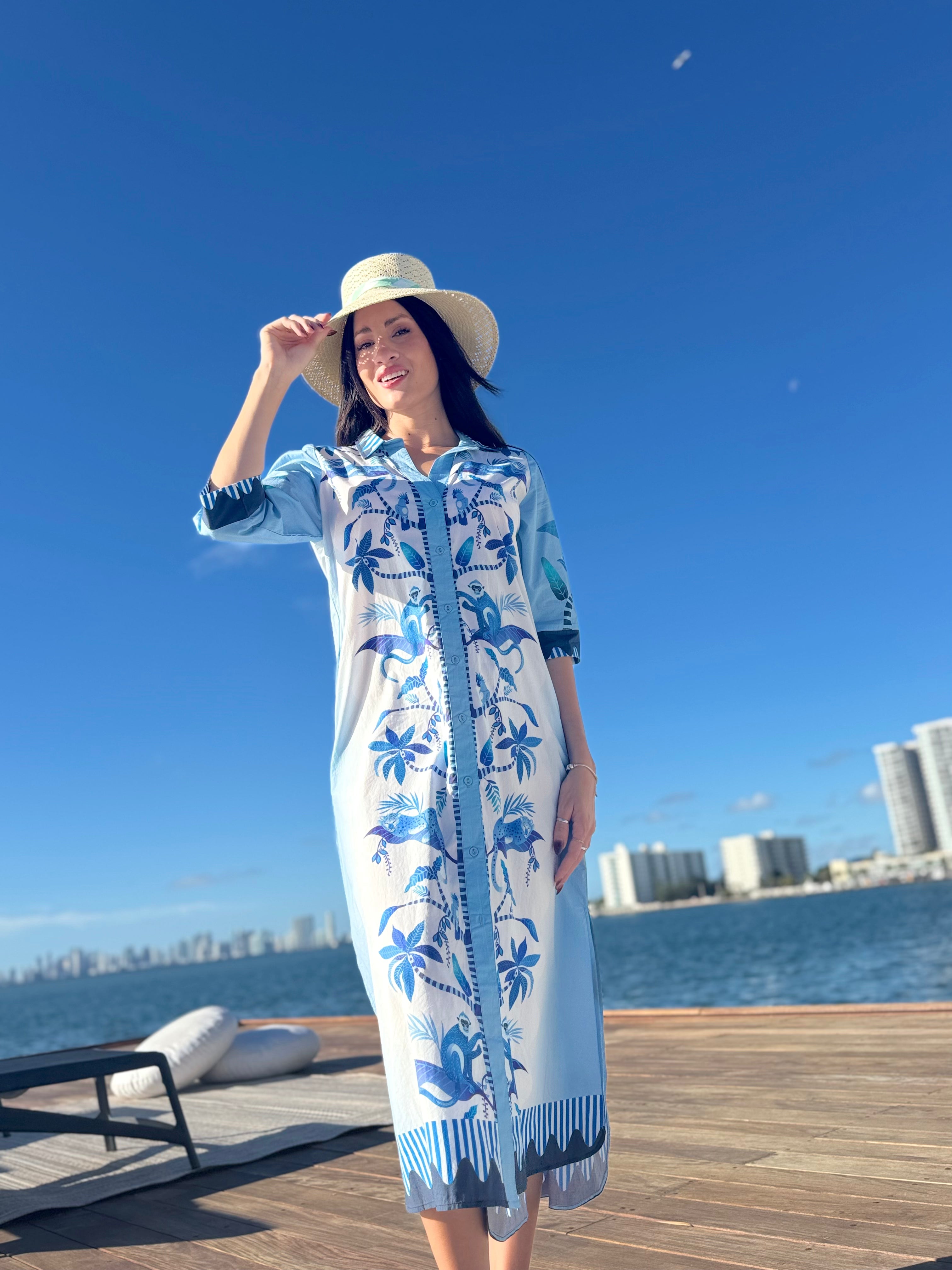 The Rhea midi is a slimming shirt dress with a flattering silhouette. This versatile day-dress can double up as a beach coverup or a duster coat. Dress up with heels, dress down with sneakers.