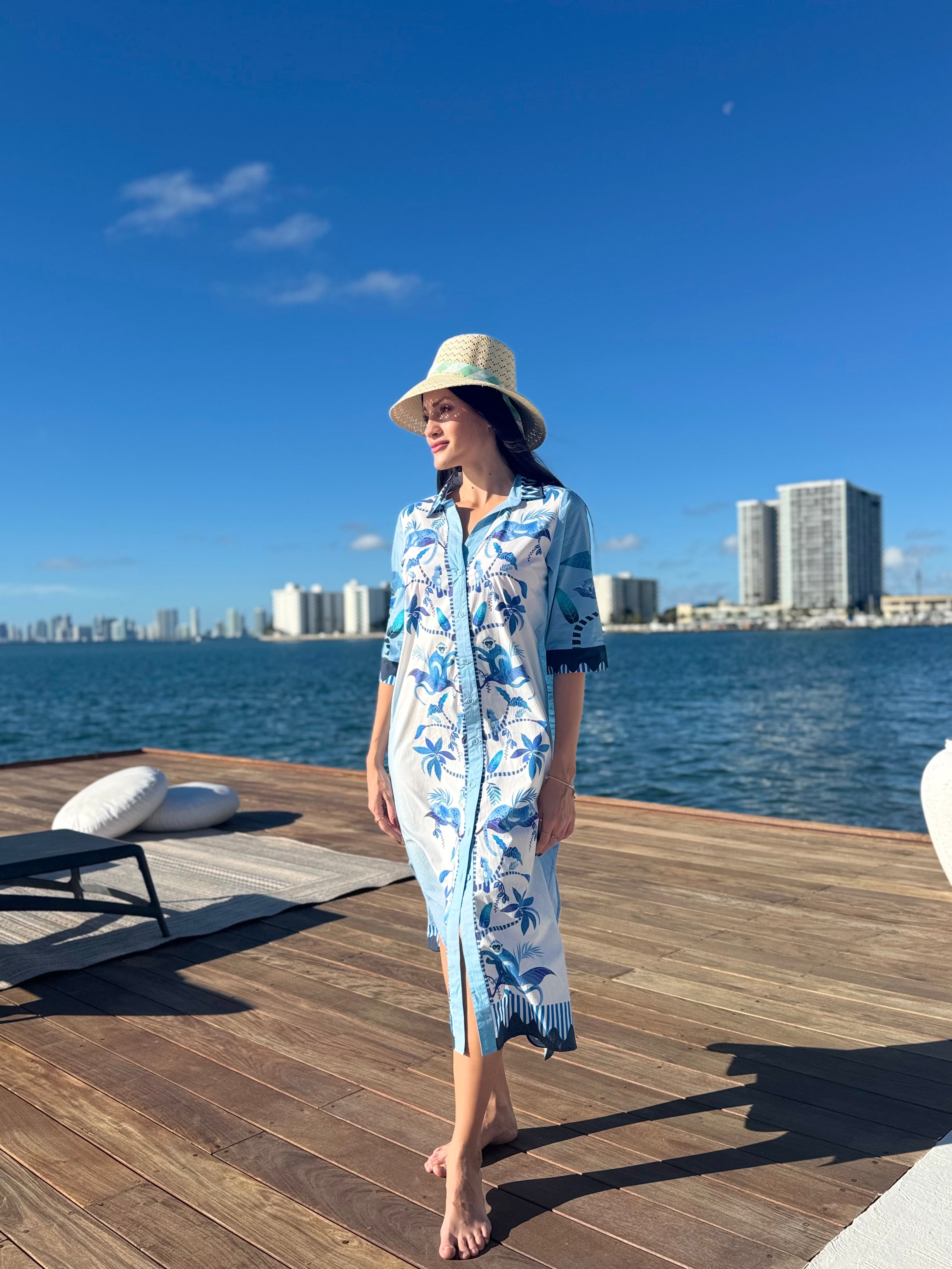 - Buttons down the front, can be worn as a duster coat with jeans or shorts