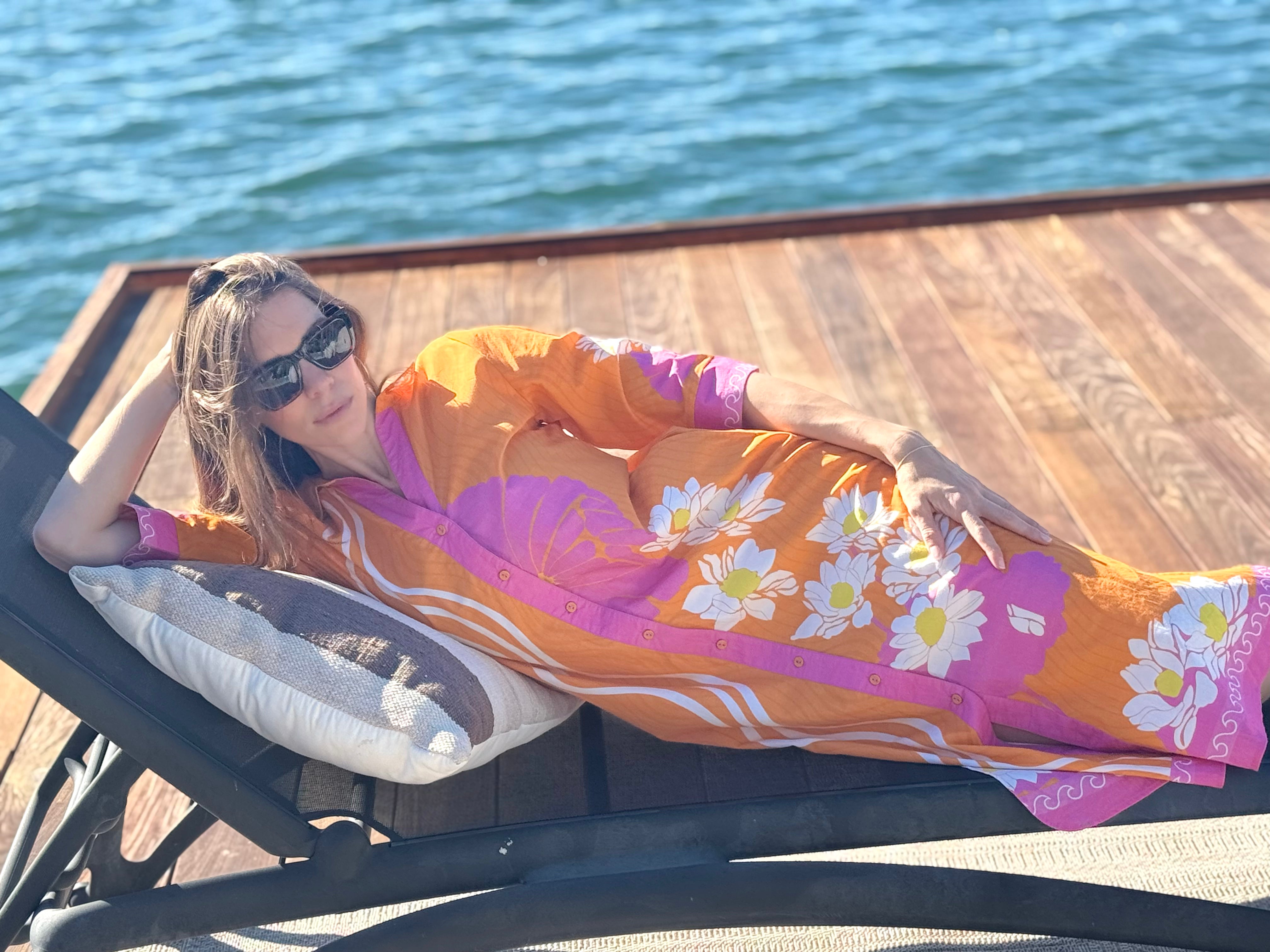 The Rhea midi is a slimming shirt dress with a flattering silhouette. This versatile day-dress can double up as a beach coverup or a duster coat. Dress up with heels, dress down with sneakers.