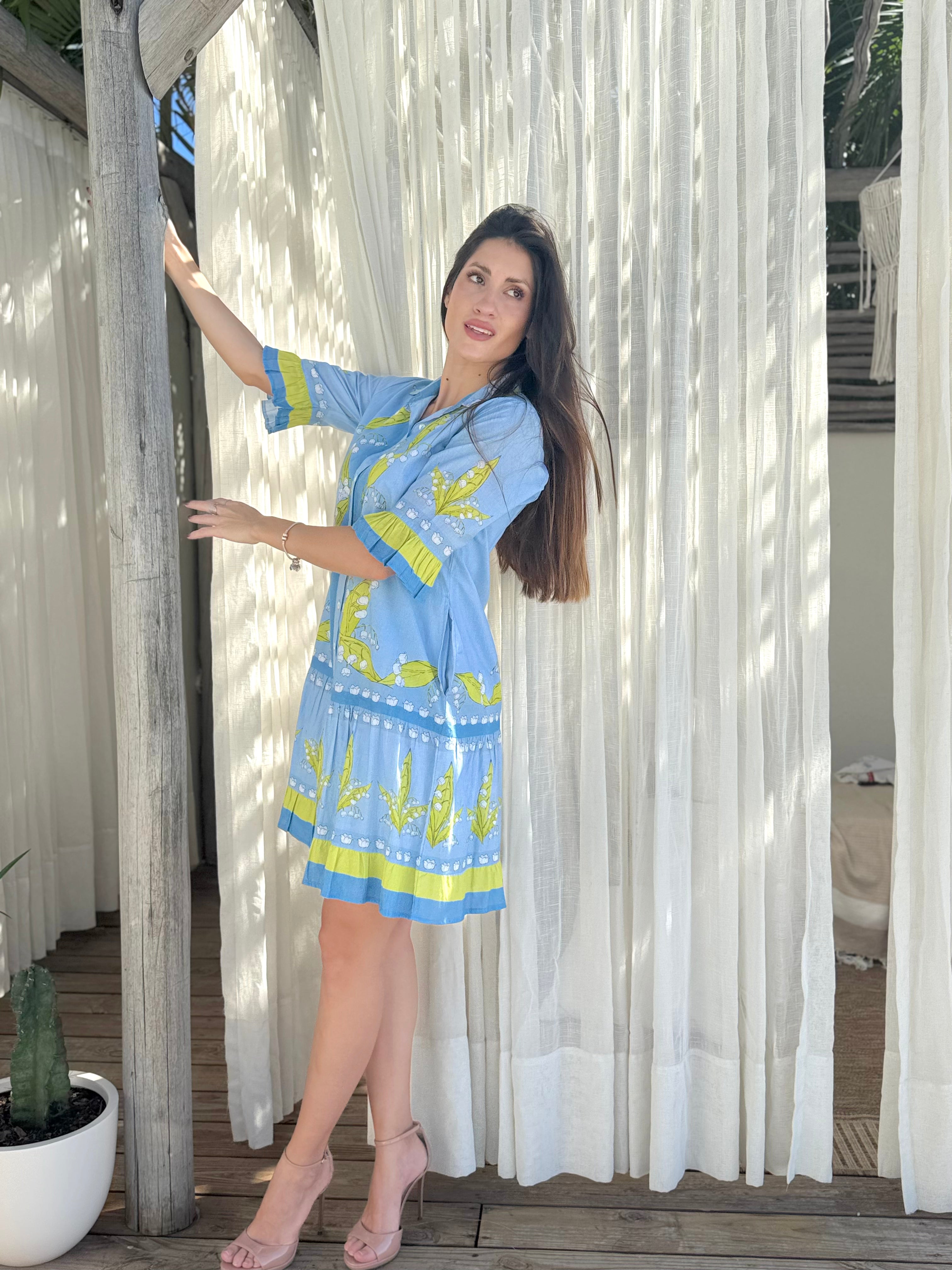 This fun day-dress is perfect for lunches, a walk on the beach, or a casual day out. Pair with luxury slides or heels for an elevated look, or sneakers for a casual look.