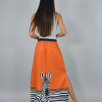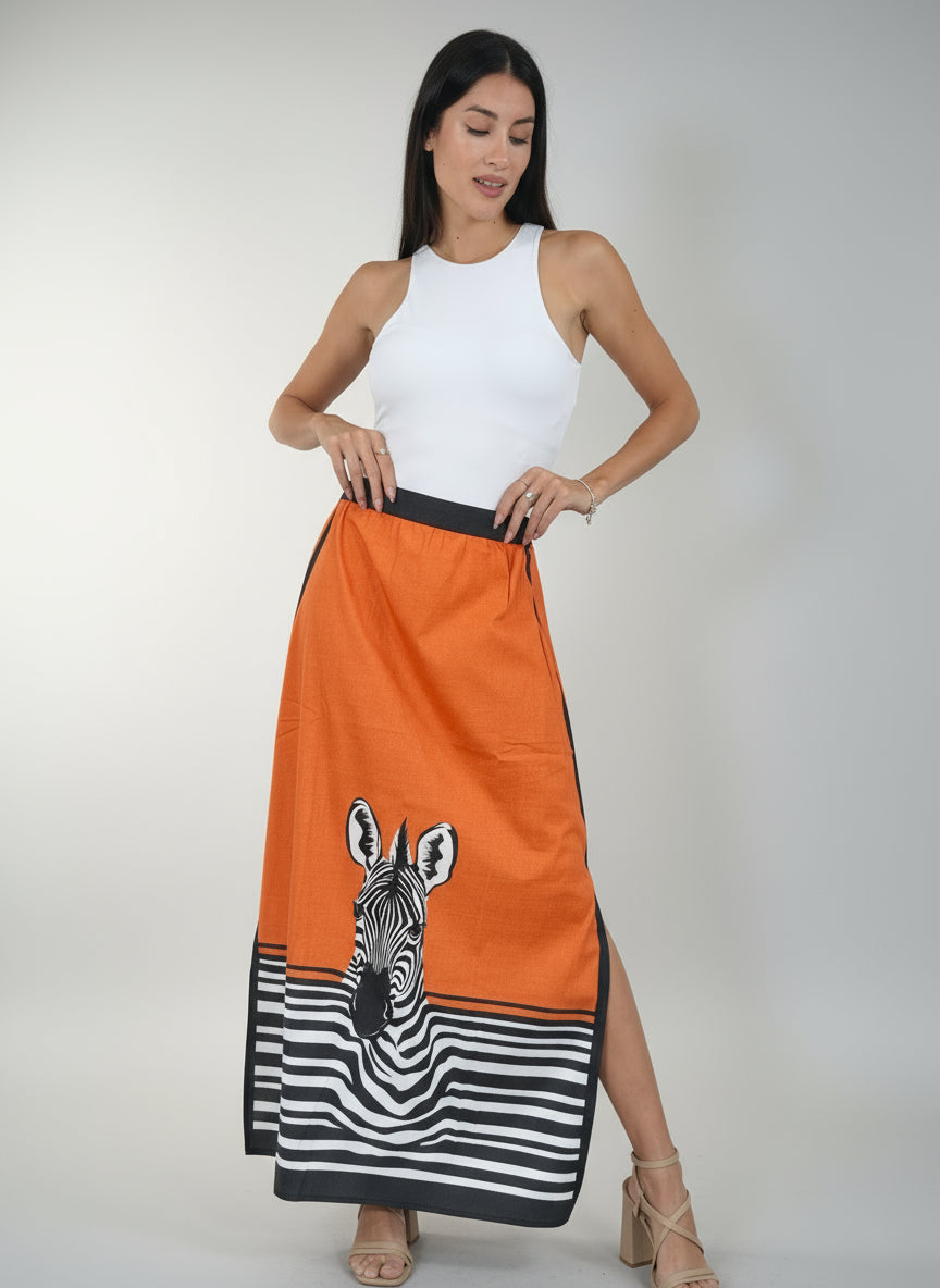 The Aix is a stylish and slimming A-line skirt with side slits that allow easy movement. We love the elastic on the back waist band that gives a perfect fit. It has a button on the side with a side-zip.