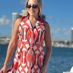The Windsor Midi is a stylish sleeveless shirtdress, with a covered placket and border trims. This silhouette flatters all body shapes and types.