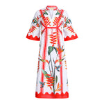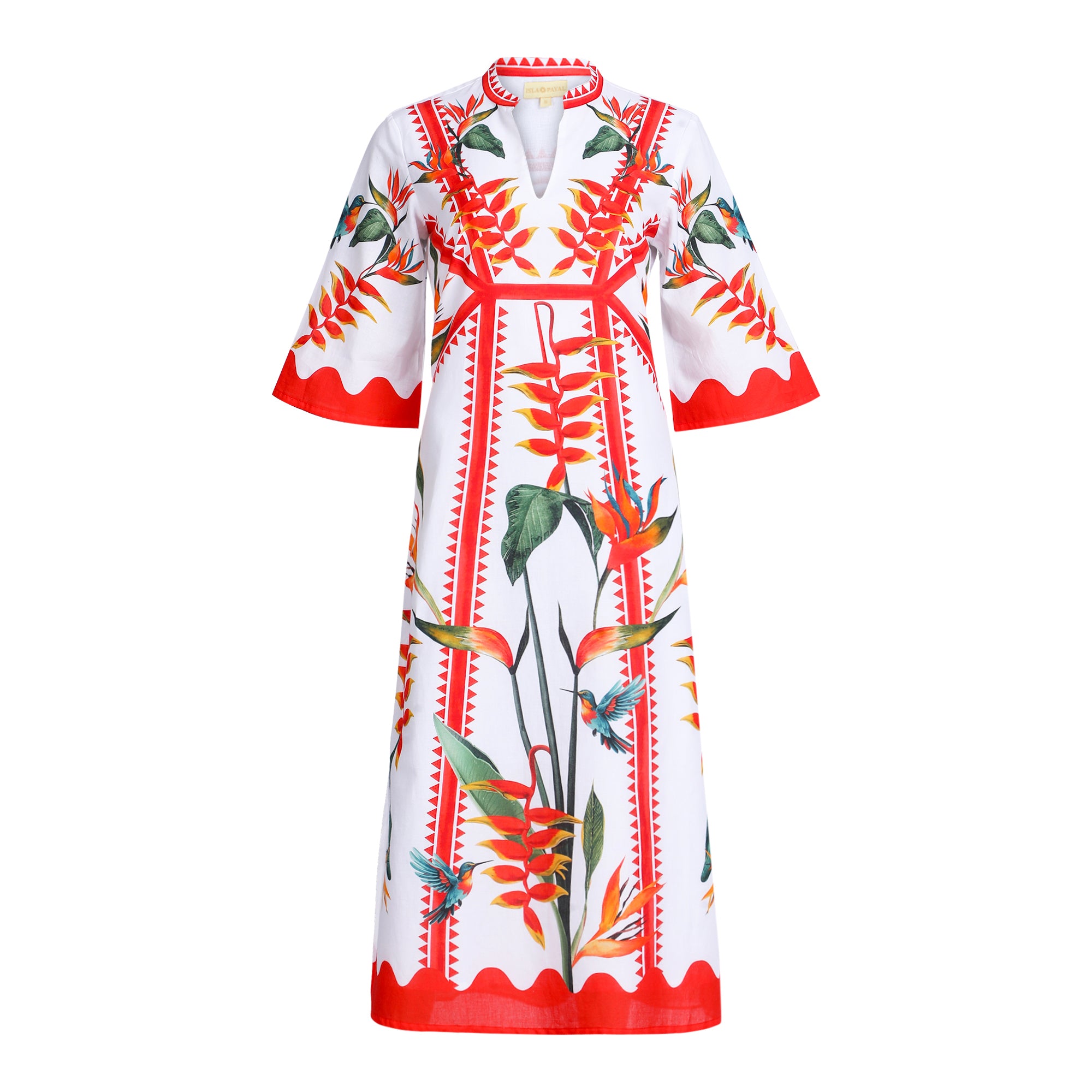The Belize caftan is a flattering, clean silhouette, with a band collar. We love the easy sleeves that complement this classic body. The side slits at the hemline show just a little leg for a quiet sexy feel.
