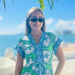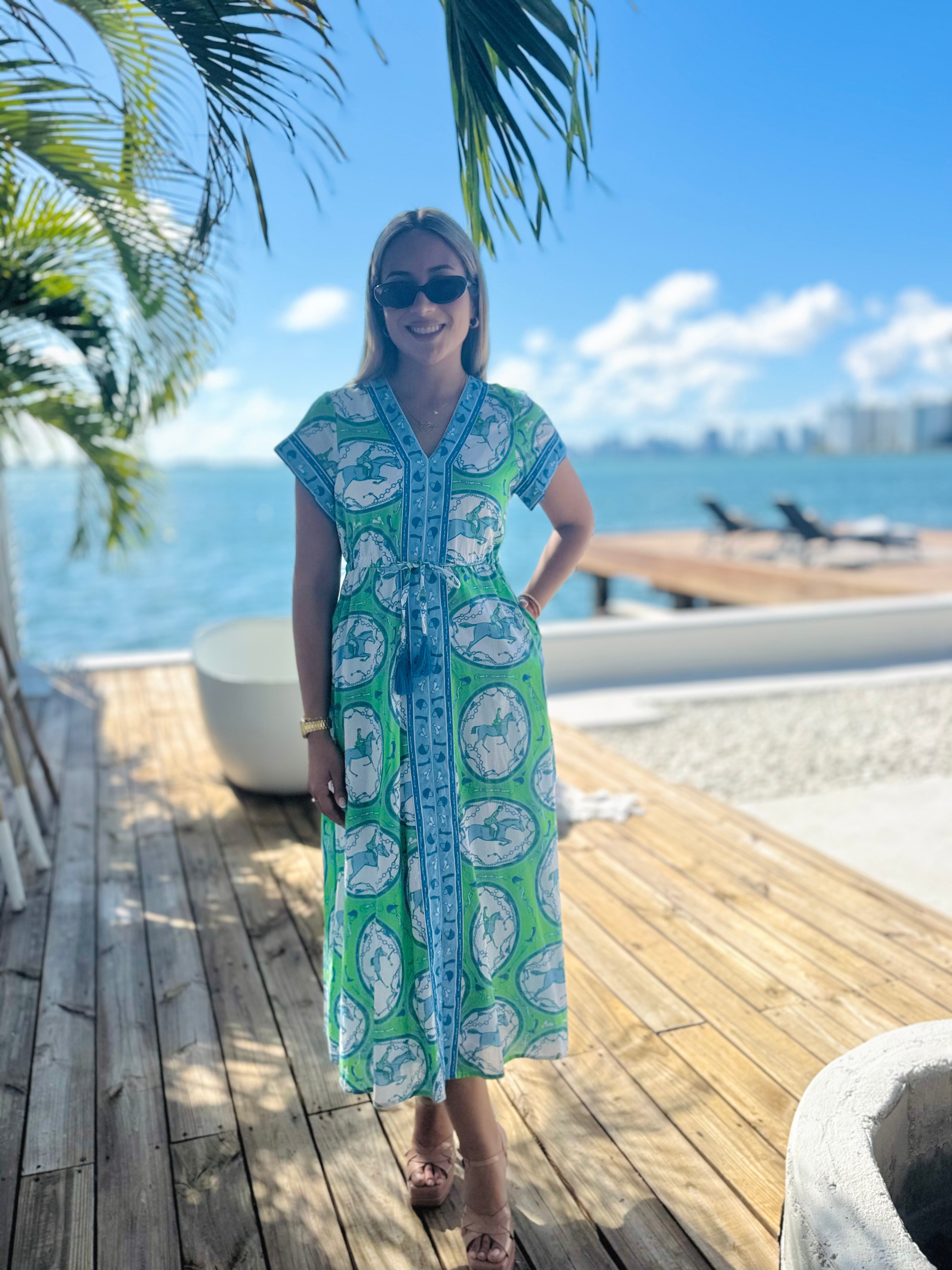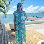 The Isla maxi is a flattering caftan, with beautiful border trims running down its length. We love the drawstring waist that slims you down. This silhouette is very flattering on all shapes and sizes- it will be a staple in your wardrobe. There are two pockets on the side seams.